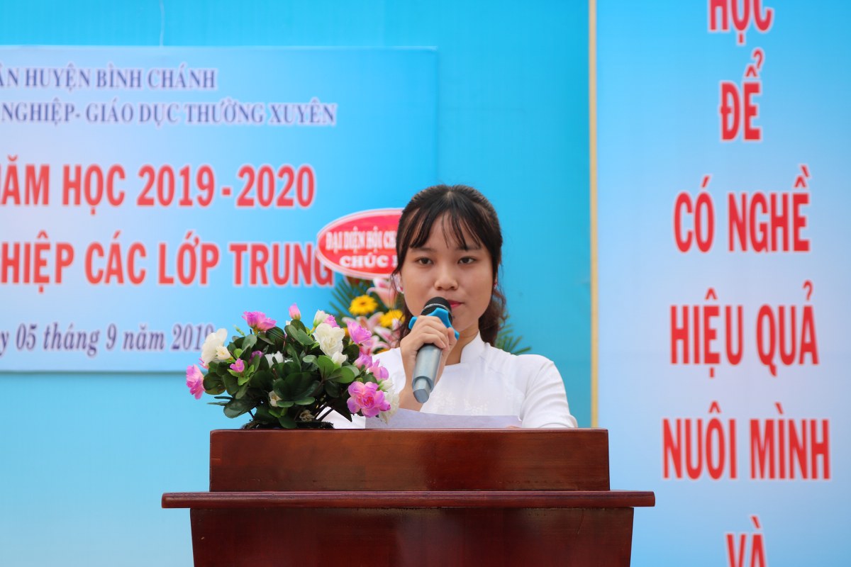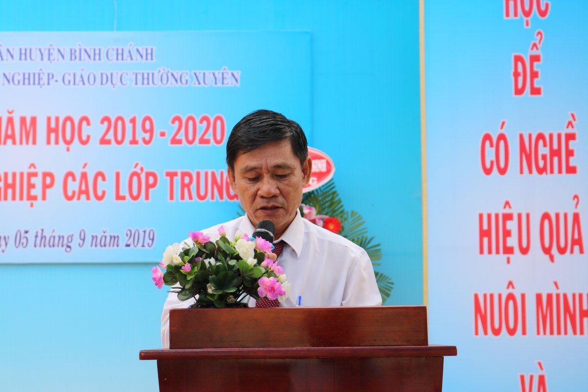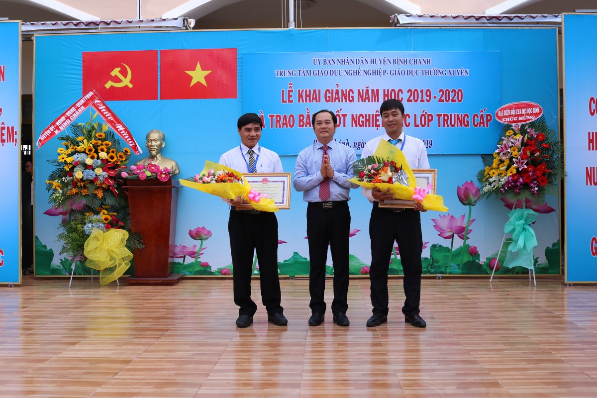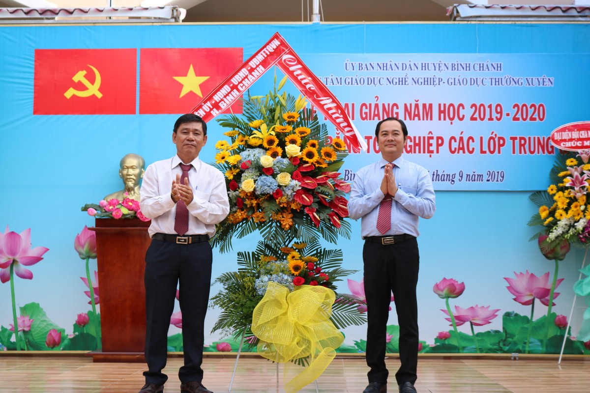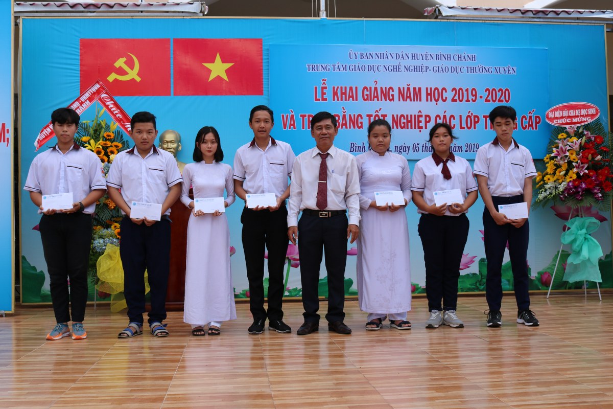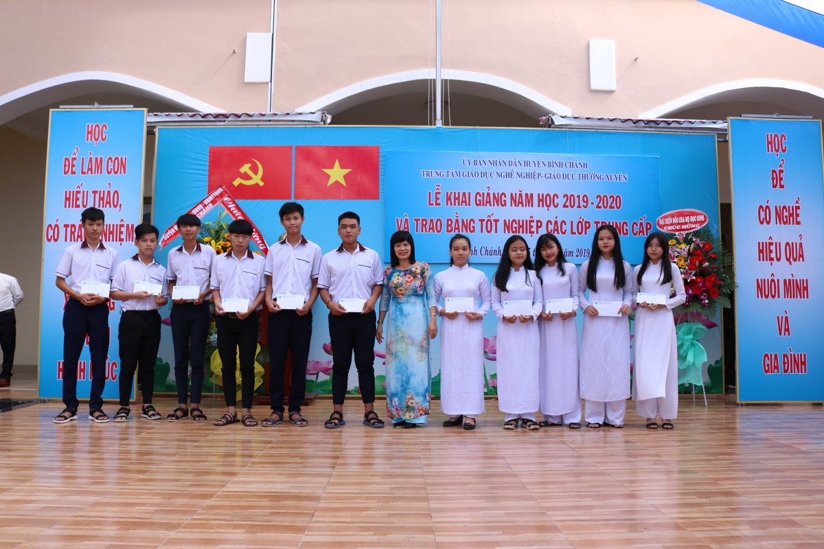 Hòa trong không khí tưng bừng của cả nước chào đón năm học mới, sáng ngày 5/9/2019, Trung tâm GDNN-GDTX huyện Bình Chánh long trọng tổ chức lễ Khai giảng năm học 2019 - 2020. Nhân dịp này, Trường cũng tổ chức phát bằng tốt nghiệp cho học viên tốt nghiệp Trung cấp các ngành học tại Trung tâm. Bên cạnh đó, Trung tâm cũng trao tặng nhiều suất học bổng và quà tặng của nhà tài trợ tặng cho những học sinh ưu tú và nhứng học sinh có hoàn cảnh khó khăn.