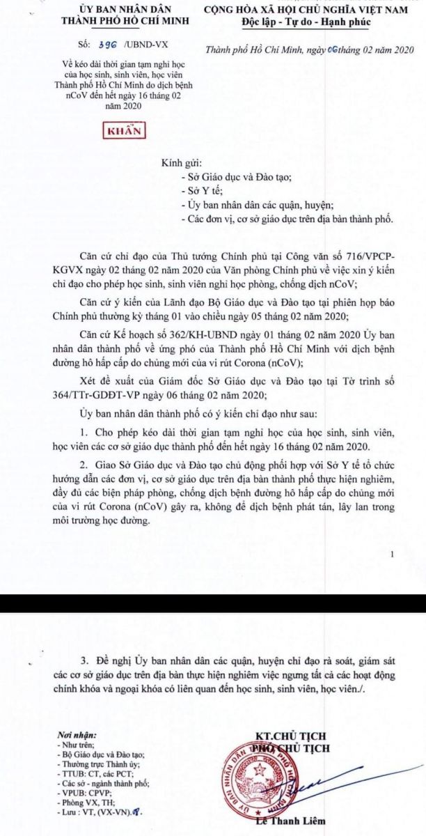 - Học sinh toàn trường được tiếp tục nghỉ học đến hết ngày 16/02/2020.